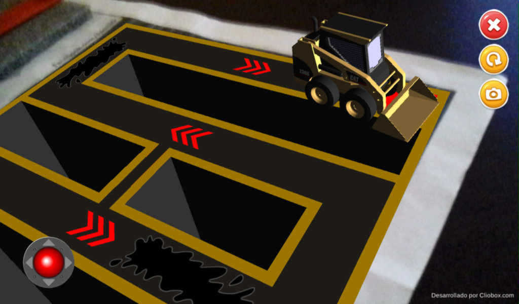 4. Ejecuta la aplicación instalada y cuando se active la cámara de tu dispositivo enfoca la imagen impresa y disfruta de AR-Tractor conduciendo al vehículo hasta la meta con el joystick virtual.