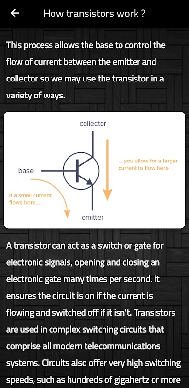 Для нас большая честь предложить вам приложение, которое дает вам информацию о транзисторах, мы предлагаем вам мир знаний, так как приложение отличается простотой транзистора, в котором вы можете прочитать то, что хотите.