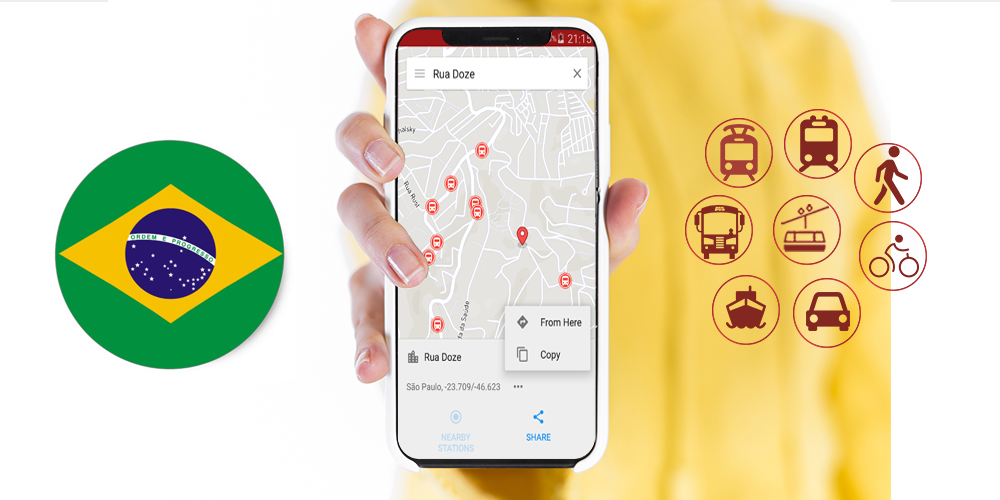 - Бразилия Transit доступна во всех бразильских городах, SPTRANS направляет всех операторов общественного транспорта.