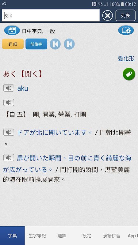 Translated Concise Japanese-Chinese Dictionary — это японско-китайский двунаправленный словарь с богатым содержанием. Помимо общих символов, он также содержит множество часто используемых профессиональных словарей. Содержание словаря включает описания словоизменений и трансформаций слов, а содержание тезауруса также регулярно обновляется.Новых слов и иностранных слов больше, чем в других словарных программах. Это незаменимый портативный инструмент для ваших бизнес-приложений, изучения языка, чтения по-японски и путешествий за границу.