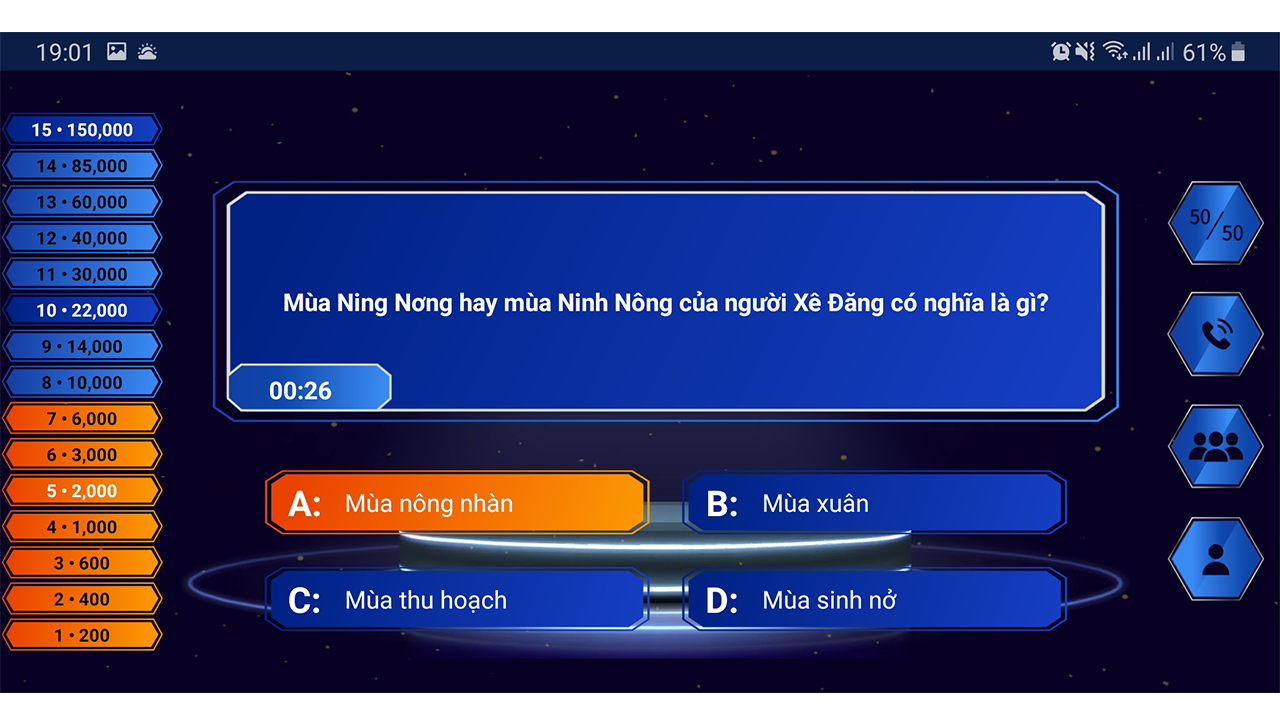 • Trợ giúp 50 – 50 : Bỏ đi hai phương án sai. Tăng cơ hội trả lời đúng.