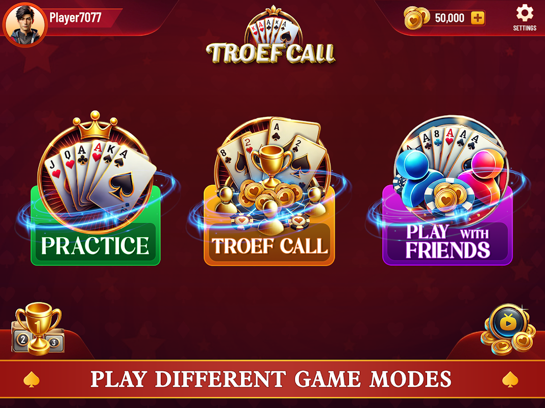 Играйте в одиночку против умного ИИ или бросайте вызов своим друзьям в многопользовательском режиме в реальном времени. Выберите свой козырь, отточите свою стратегию и доминируйте за столом. Независимо от того, являетесь ли вы обычным игроком или профессиональным игроком, TroefCall предлагает глубокий игровой процесс, культурный колорит и захватывающие награды.
