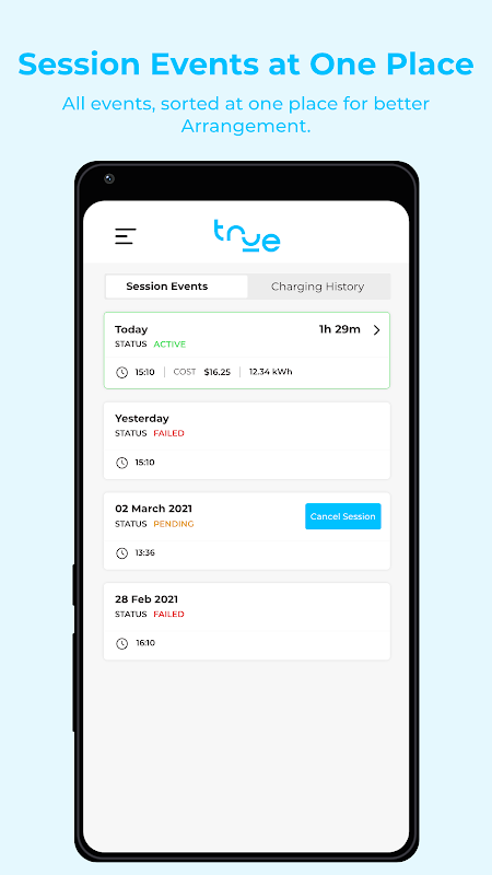 True Driver - предпочтительное приложение для зарядки электромобилей. На работе, в пути или в гостях True Driver сделает вашу зарядку интеллектуальной.