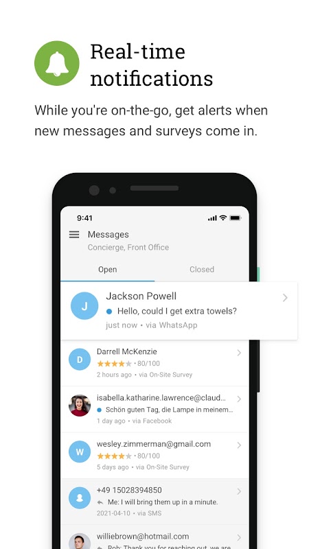 * Получайте сообщения от гостей и обзоры Live Survey в режиме реального времени