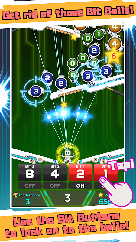 Enter the same number as shown on a Bit Ball to automatically lock on to it and launch an energy bullet to knock it out!