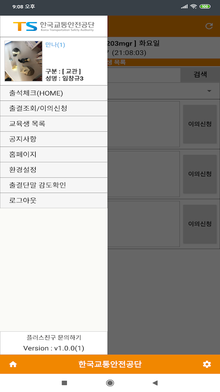 Электронное приложение посещаемости для обучения беспилотников Корейской корпорации безопасности дорожного движения. (Для инструктора)