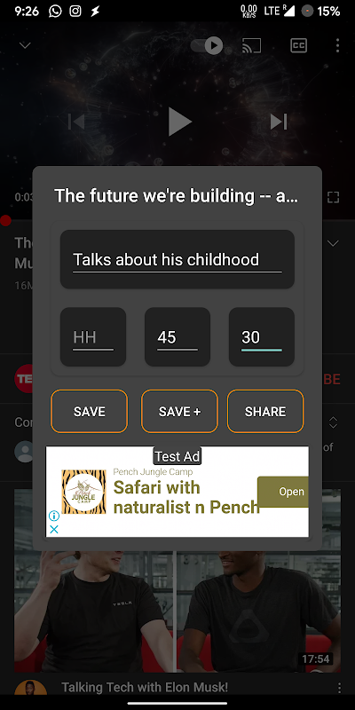 Вы можете поделиться видео с людьми из этого приложения, и когда они нажмут на ссылку на видео, предоставленную из этого приложения, видео начнет воспроизводиться внутри приложения с отметки времени, с которой вы его сохранили.