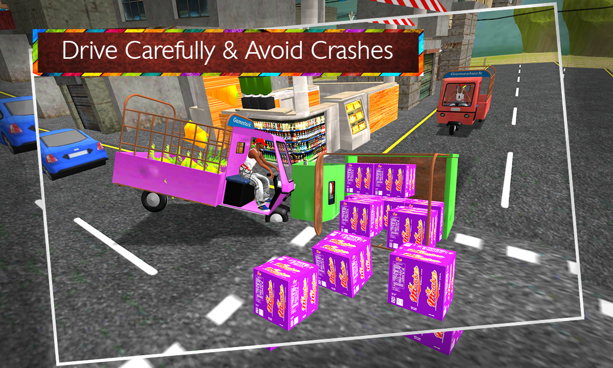 Game include both city and mountain area. go to the fields and collect vegetables fruits and other goods to supply them to shops in the market. environment of this game is beautiful and set in out side of the city and country side. drive your rickshaw from the starting position and find the targeted location where goods are ready to loaded on cargo, supply that goods to the market where need.