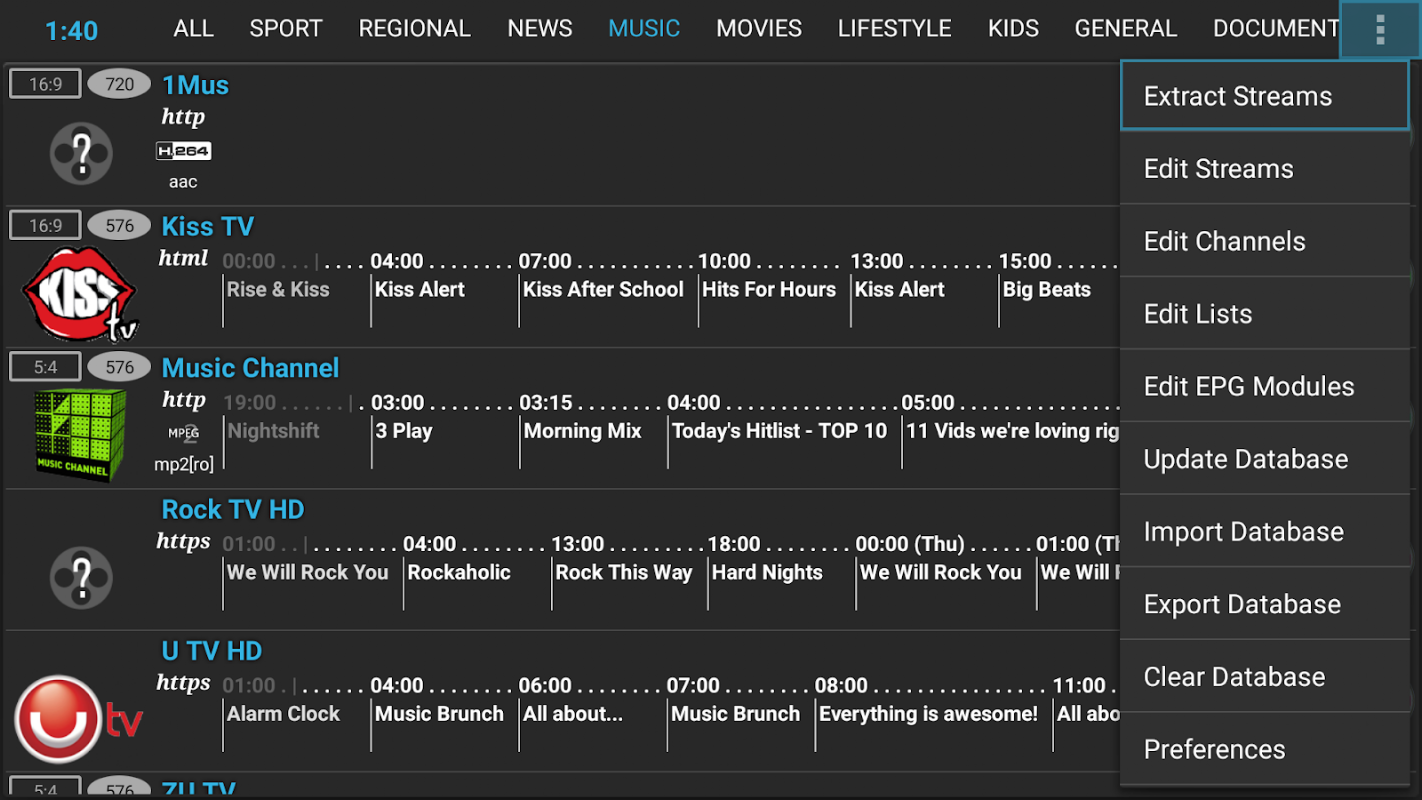 - Извлечение потоков с помощью парсера XML, M3U или REGEX,