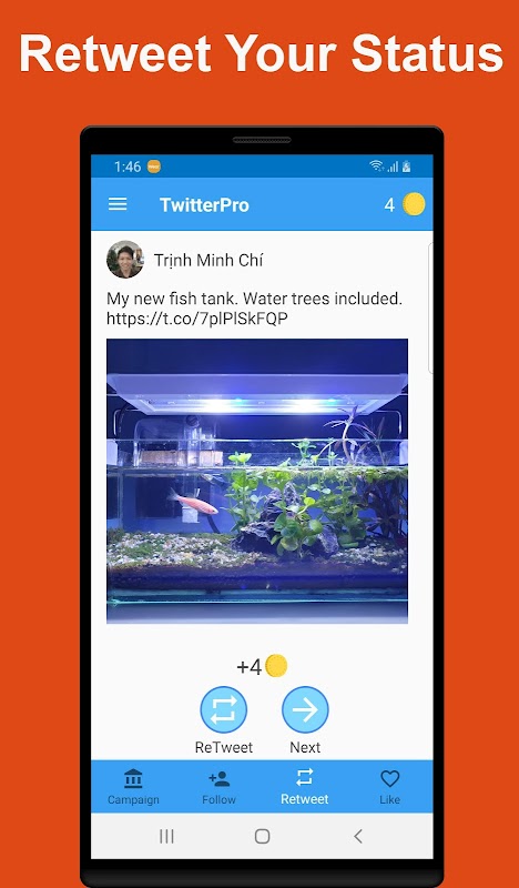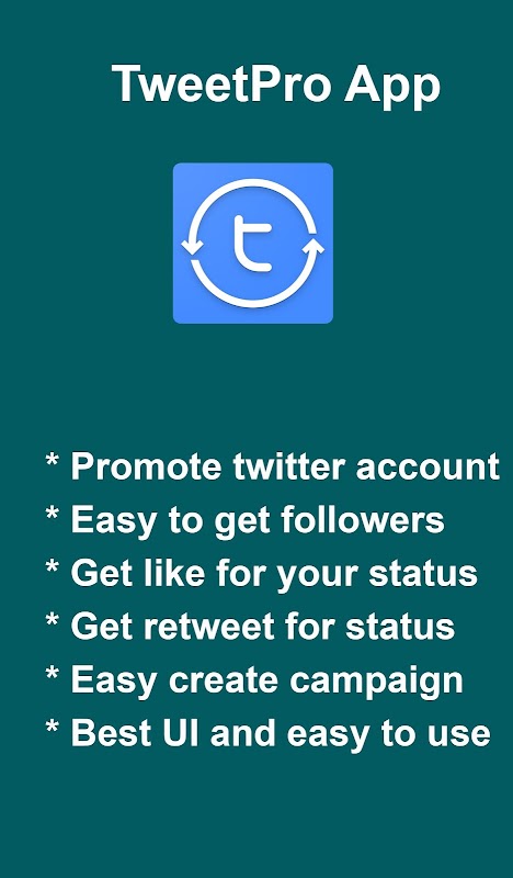 TweetPro - Follow, Like & Retweet For Twitter is the best application to helps you boost your followers and make your tweet more popular. We create a platform to help your twitter account and your tweet reach out to many people around the world. You will get real followers, likes and retweets from real users easily and quickly.