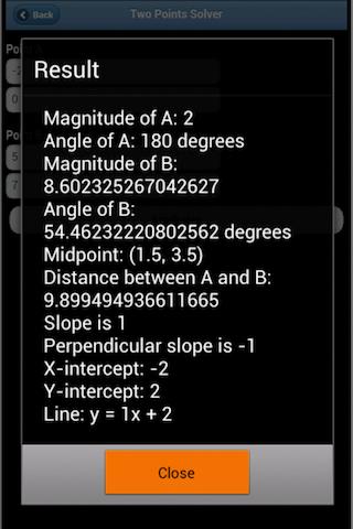 Since it’s crucial for students to understand the concepts behind the formulas, “Two Points” also provides a thorough explanation of the computations that are performed. Math students will love the ability to check their homework answers quickly. Teachers and other professionals will appreciate the ability to discover a wealth of information in the blink of an eye.