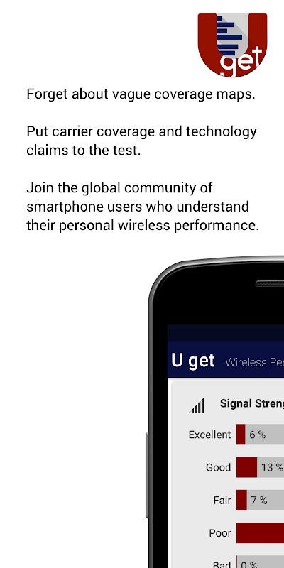 Скачай приложение 'U get' eщё сегодня и присоединись к мировому сообществу пользователей смартфонов, которые точно знают качество сети их оператора, в одновременно вносят вклад в более полную картину мира мобильной коммуникации."