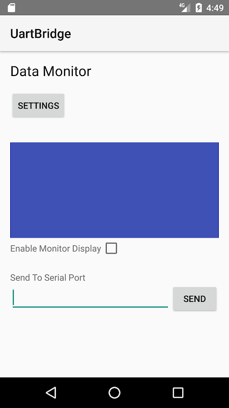 Точкой этого приложения является преодоление последовательных данных, считанных из (последовательного порта) устройств UART, подключенных к порту устройства Android USB через к сетевой розетке.