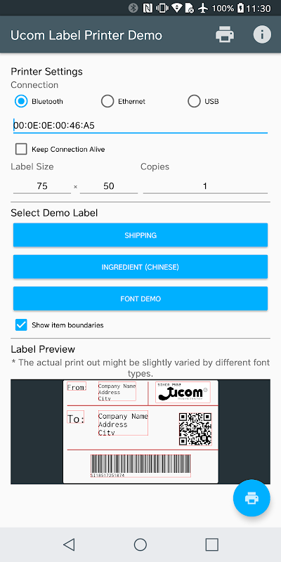 Ucom Label Printer Demo is a sample application for Android devices connecting Ucom Label Printer.