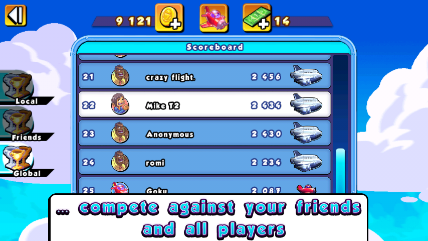 Whenever you get better, either by collecting more coins and medals during a mission or by finishing them faster through improving your aircraft, you'll increase your overall score and earn rewards.