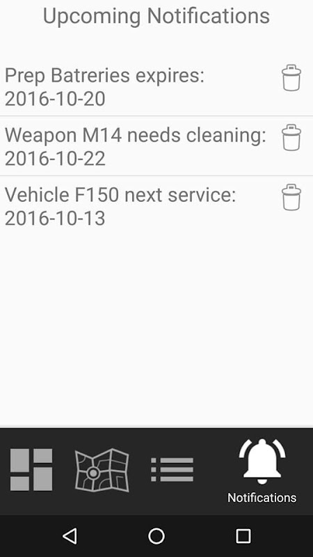 Schedule notifications for prep expiry, vehicle maintenance or weapon cleaning.