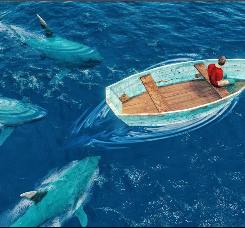 Kill all whale shark in deep sea with army sniper gun in this survival mission