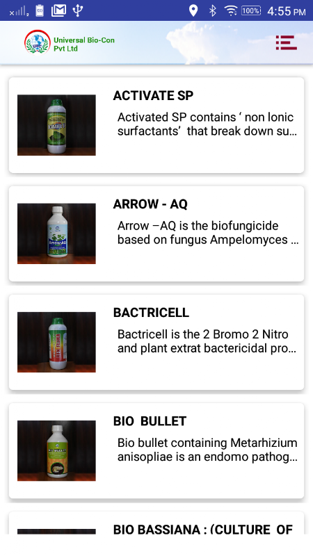 Universal Bio con pvt Ltd., биологический гигант в сельскохозяйственной отрасли. Имя, известное превосходством в качестве продукции и сервиса. Компания, постоянно работающая на благо фермеров, работает на рынках Махараштры, Гуджарата, Мадхья-Прадеша, Карнатаки и Тамилнада более 14 лет. Universal Bio-Con pvt Ltd. основана на биологическом или нехимическом подходе к проблемам сельского хозяйства. С целью максимального использования потенциальной естественной фауны и древних знаний о травах для создания качественной и качественной сельскохозяйственной продукции, безопасной для человека и свободной от любых опасных химических веществ, влияющих на нашу экосистему.