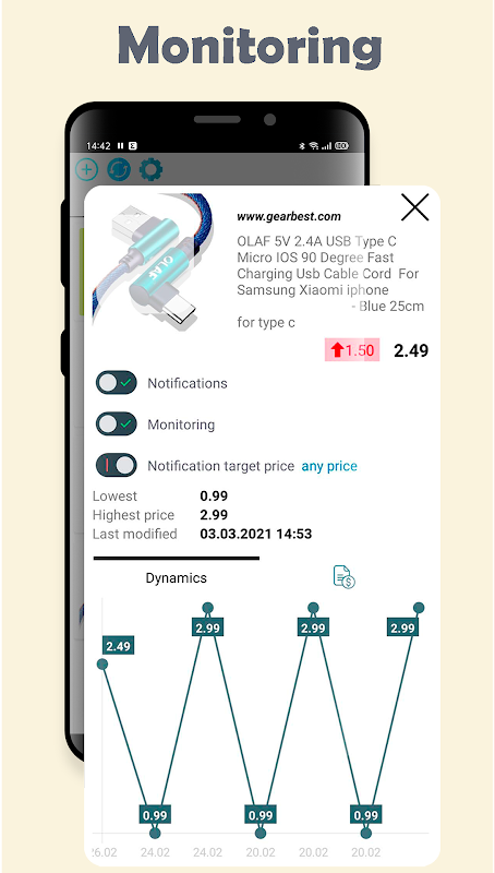 Просто добавьте желаемый товар, и приложение сообщит вам об изменении цены! Единственное, что вам нужно сделать, это - решить, когда покупать.