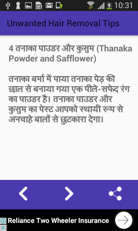 For this very problem we bring you our application Unwanted Hair Removal Tips - अनचाहे बाल हटाए .