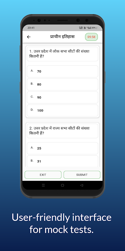 Добро пожаловать на пробный тест UPPSC на хинди 2023, ваш лучший помощник для уверенной и точной сдачи экзаменов Комиссии по государственной службе штата Уттар-Прадеш (UPPSC). Это приложение, разработанное специально для абитуриентов, говорящих на хинди, предлагает полный набор функций, которые помогут вам подготовиться и проложить путь к успеху в UPPSC.
