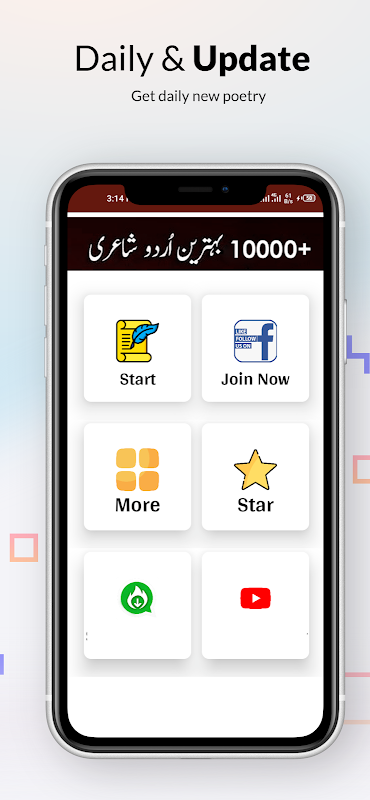 Поэзия на урду и Shayari на урду: мы предоставляем вам более 1000 различных типов категорий текста, статус поэзии на урду для ваших приложений в социальных сетях, таких как WhatsApp Facebook и других приложений для социальных сетей.