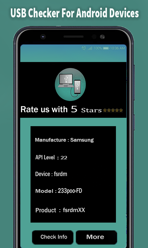 Manufacturer, Brand, Model, Board, Hardware, Android ID This application will provide information about almost all currently plugged-in USB device.