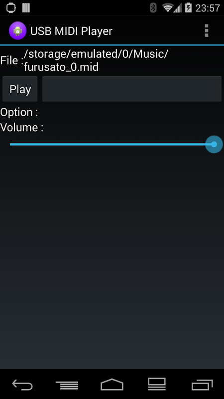 2) ファイラーアプリでmidi(.mid)ファイルを指定、「USB MIDI Player」を選択すると起動します