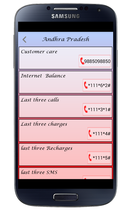 The app get list of ussd codes to check customer care number ,balance, offer, plan , plans, and how to send message etc.