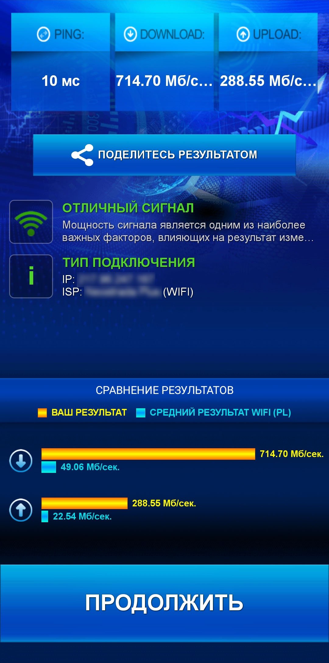 • отображение основной информации о соединении (IP-адрес, провайдер и организация, оператор или название сети WiFi),