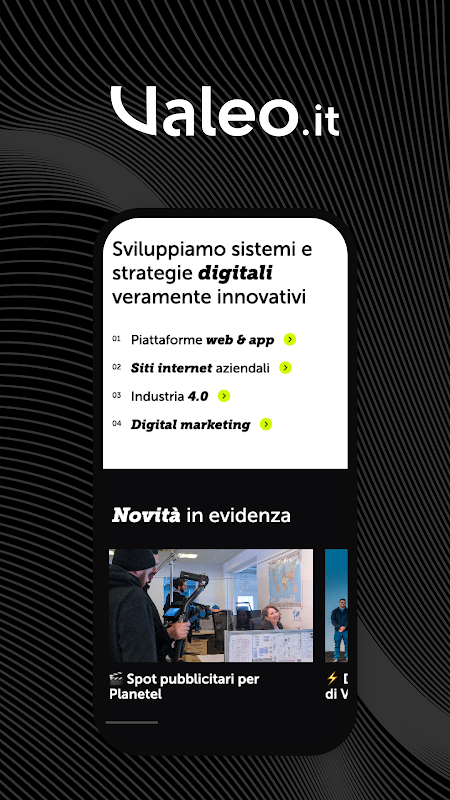 Команда, готовая поддержать вас в вашем путешествии в цифровой мир. Загрузите приложение Valeo.it и узнайте о наших услугах, проектах и новостях!