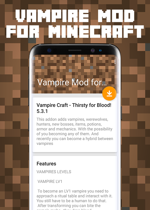 Vampire Mod для Minecraft PE — это приложение, которое позволяет быстро и легко установить «Vampire Craft Addon» в игру Minecraft Pocket Edition.
