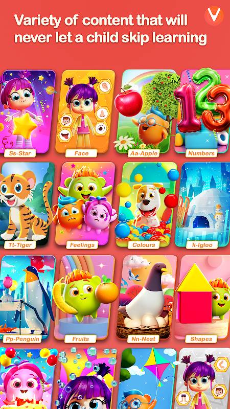Ребенок выучит более 200+ тем: алфавиты, числа, фрукты, животные, формы, манеры, чувства, части тела и хорошее поведение. Мы можем продолжить список тем.