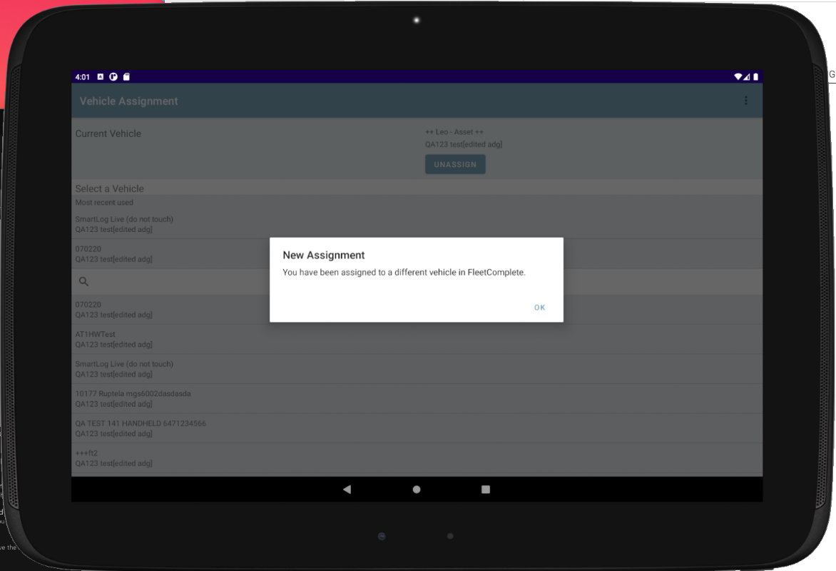 Разрешить водителю назначить себя автомобилем для Fleet Complete
