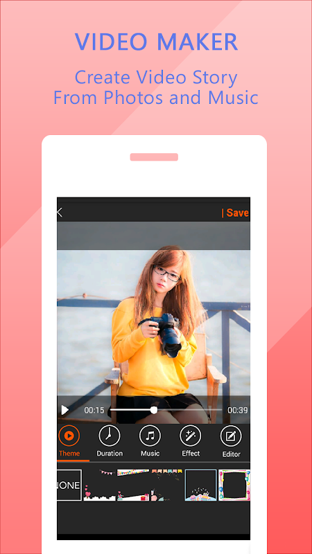 Video Editor Frame is one of the best video editor, photo slideshow maker and movie editing apps in Android Store. With this app, you can easiest way to create, edit your video story from gallery photos. We are trying to build an all-in-one video editor as: Text, Music, Theme, Effects, Frames... Everything you need to make an awesome video.