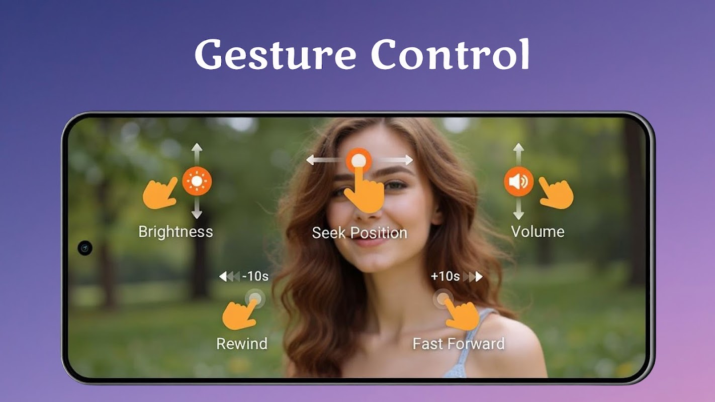 *Управление жестами: регулируйте яркость, громкость и позицию воспроизведения простыми свайпами для удобства.