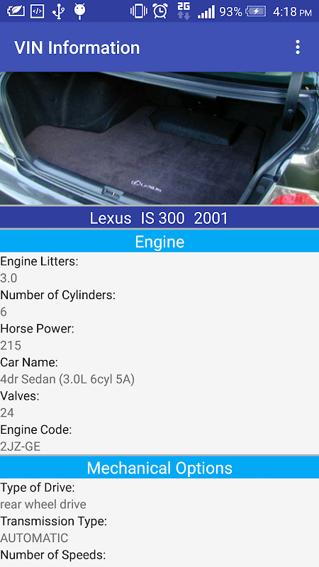 VIN_Information te proveerá información detallada acerca del vehículo en el que estas interesado. Información como los "Detalles del Motor, Detalles de la Transmisión, Rendimiento y mas" estará al alcance de tus manos.