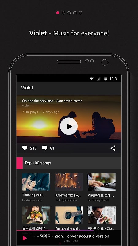 Violet is a new type of music app that anyone can upload their own singing videos! In Violet, you can be the trending artist and artist of number 1 song.