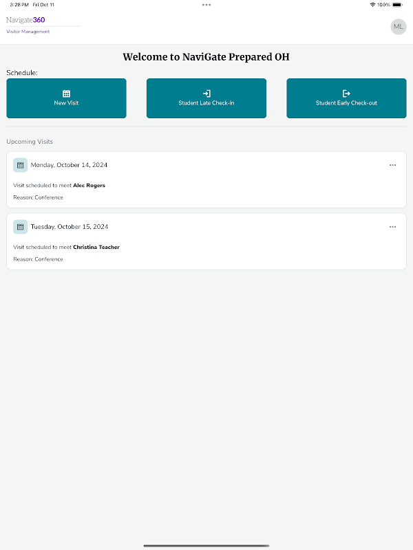 Примечание. Чтобы использовать регистрацию посетителей, вам понадобится код приглашения, предоставленный вашей школой через решение Navigate360 для управления посетителями.