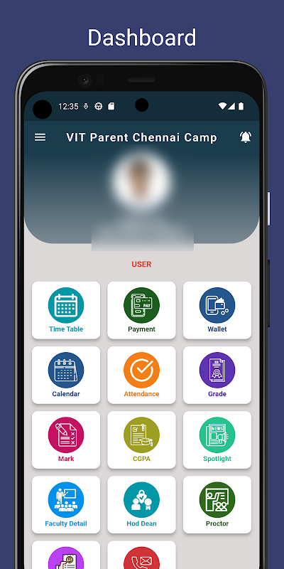 Приложение предназначено для родителей студентов, поступивших в кампус VIT в Ченнаи.