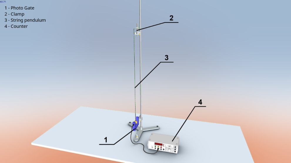 КРАТКОЕ ОПИСАНИЕ: Период колебаний T подвесного маятника зависит от длины нити маятника L, но не зависит от массы груза m. Это проверяется рядом измерений, при которых период колебаний такого маятника измеряется с помощью фотоэлектрического датчика, подключенного к цифровому счетчику.