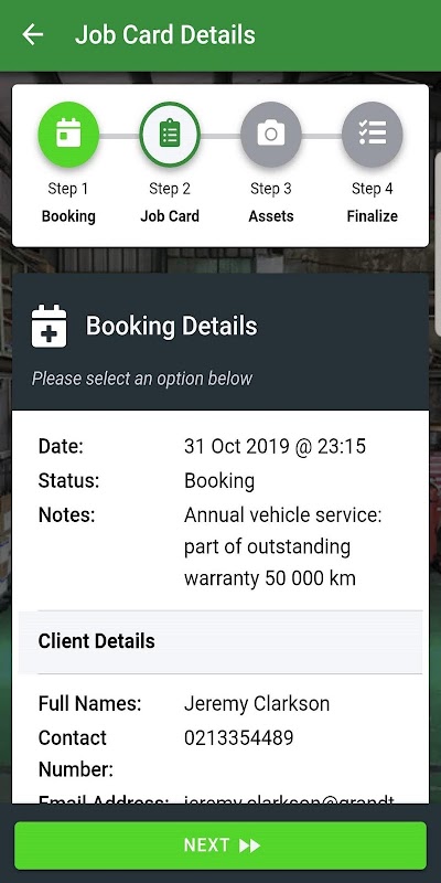 VMG Workshop Mobile. Добавить фотографии, просматривать клиенты, транспортные средства, бронирование и рабочие карты