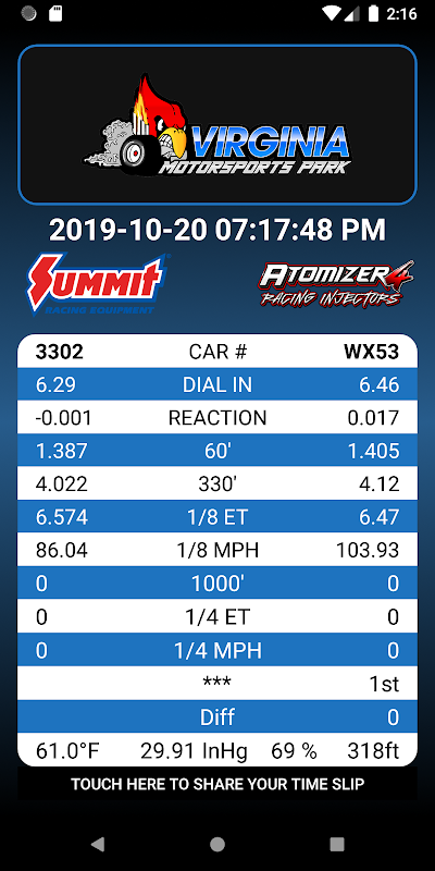 Приложение Virginia Motorsport Park TimeSlip