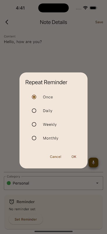 • Автоматическая категоризация: наш ИИ анализирует содержимое вашей заметки и разумно предлагает категорию, сохраняя ваши идеи организованными с самого начала.