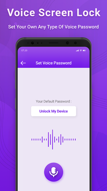 ★ Включите приложение Voice Lock Screen одним нажатием на микрофон и установите голосовой пароль.