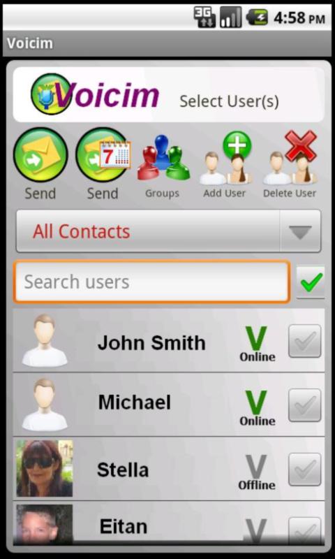 Voicim is a voice messenger application for mobile phones and tablets that allows users to push voice alerts to their friends in an easy way.