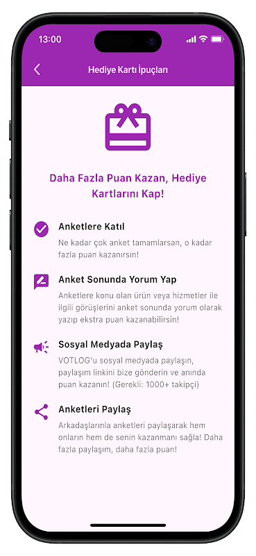 Хотите выиграть подарочные карты от всемирно известных брендов? Многие бренды публикуют для вас опросы на VOTLOG. Вы можете зарабатывать баллы, участвуя в этих опросах, и участвовать в живой гонке за лидерство, используя заработанные баллы. Баллы, которые вы заработаете в приложении VOTLOG, могут внезапно превратиться в подарочные карты всемирно известных брендов. Участвуйте, сохраняйте, побеждайте.