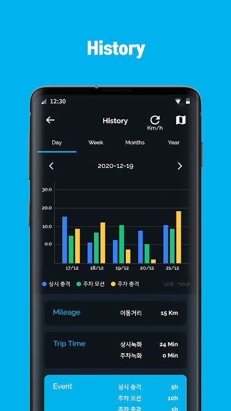 Ваши маршруты будут надежно сохранены в меню истории мобильного средства просмотра VUEROID, чтобы вы могли получить доступ ко всем своим предыдущим поездкам на автомобиле и сравнить преимущества