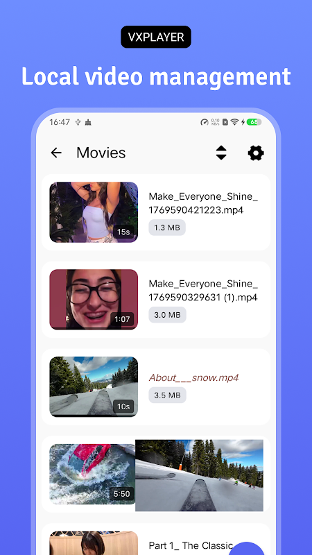 • Автоматически определяет все видеофайлы на вашем устройстве и SD-карте
