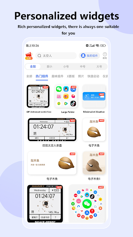 Уже есть множество виджетов и стилей, будь то простой макет фотографии или мощный функциональный виджет (обратный отсчет, количество шагов, X-панель, часы, погода и т. д.). Универсальные виджеты глубоко оптимизированы для вас, предоставляя богатые персонализированные настройки, которые помогут вам создать супер персонализированный рабочий стол.